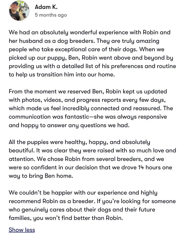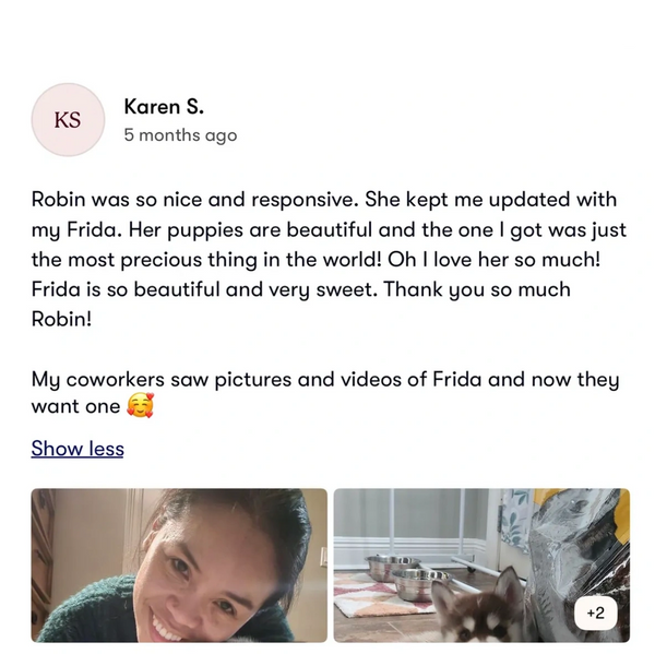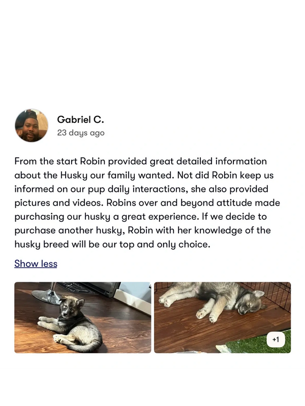 These are photos of some of our past litters! These beautiful Truhusky puppies are now part of a wonderful, loving home and family. Truhusky is always available for our puppies and their families. That never stops! We also love receiving new updates, pictures & videos, and/or any other accomplishments made by our pup