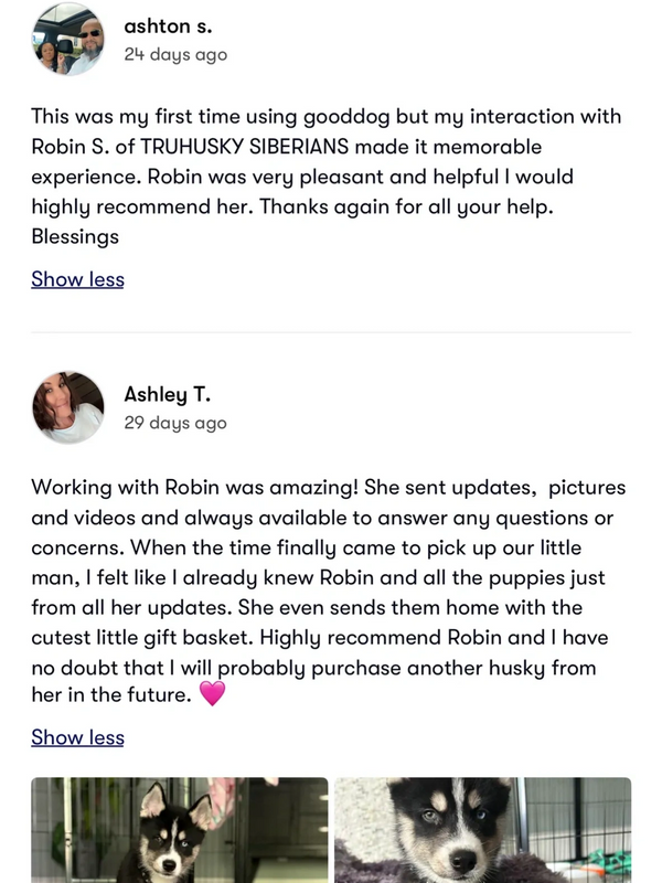 Our babies are adopted quickly, so reach out to reserve your furever friend or to ask any questions.